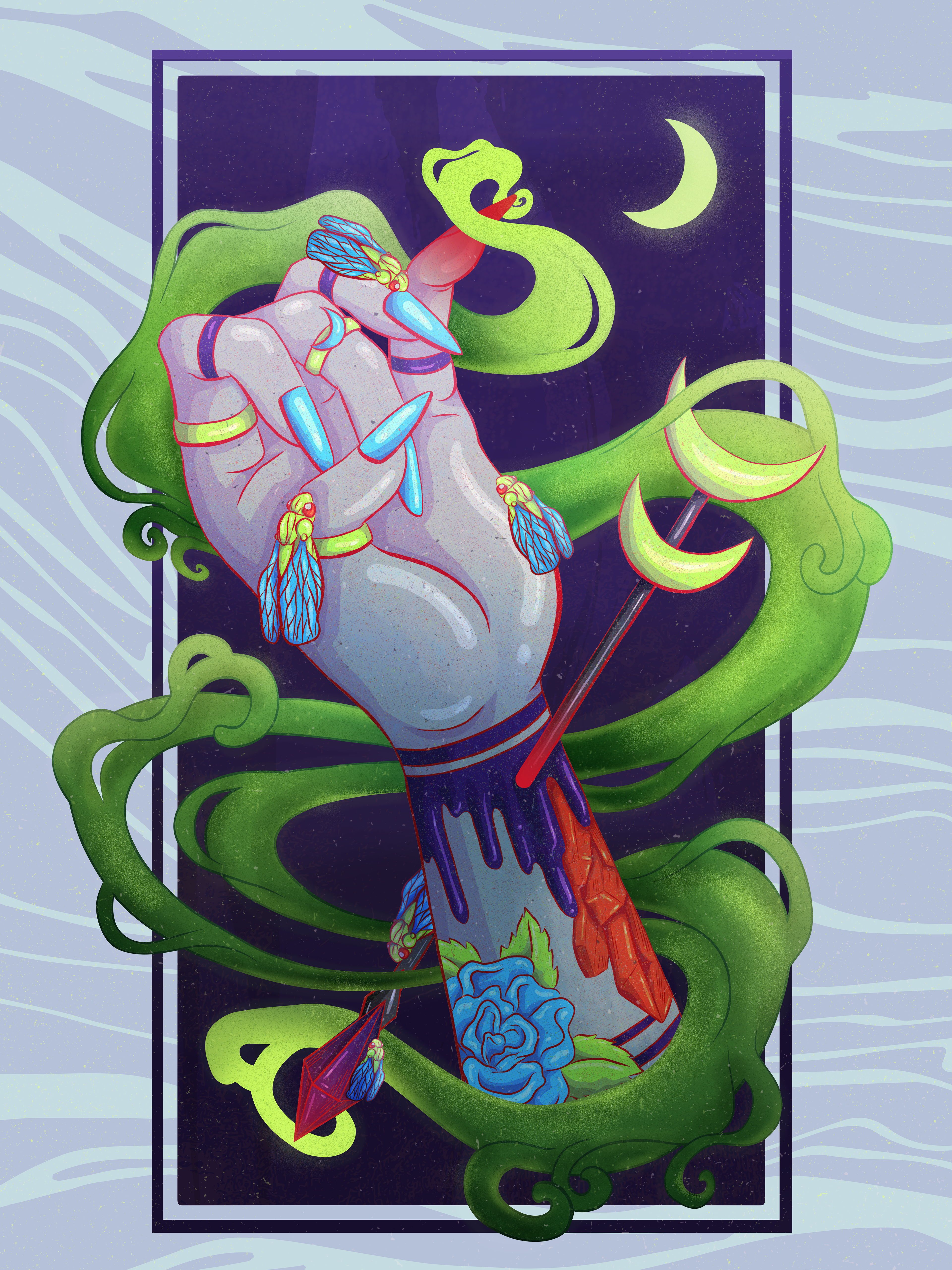Another hand study done in Adobe Fresco, exploring vectors and textures.